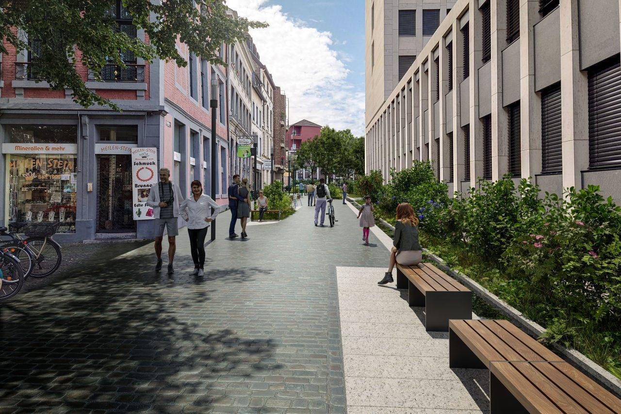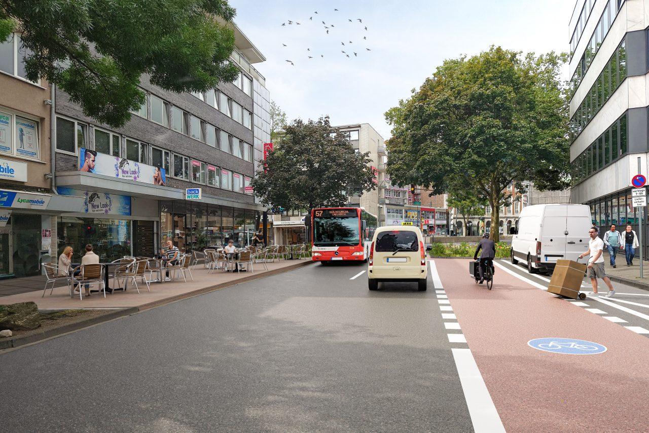 Weitere zentrale Maßnahmen sind der Ausbau der Premiumfußwege (u.a. Pontstraße, Krakaustraße und Lochnerstraße), die Offenlegung des Paubachs in Rennbahn, Klappergasse und Hartmannstraße, der Innenstadtabschnitt der Radvorrangroute nach Haaren, der Ausbau von Lade- und E-Scooter-Abstellzonen.